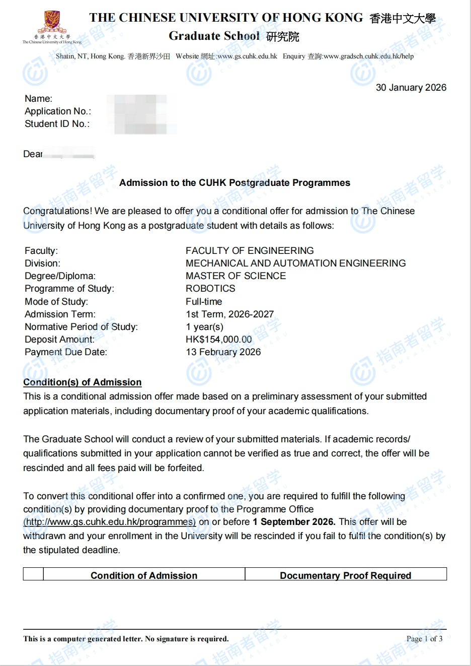 香港中文大学机器人学理学硕士研究生offer一枚
