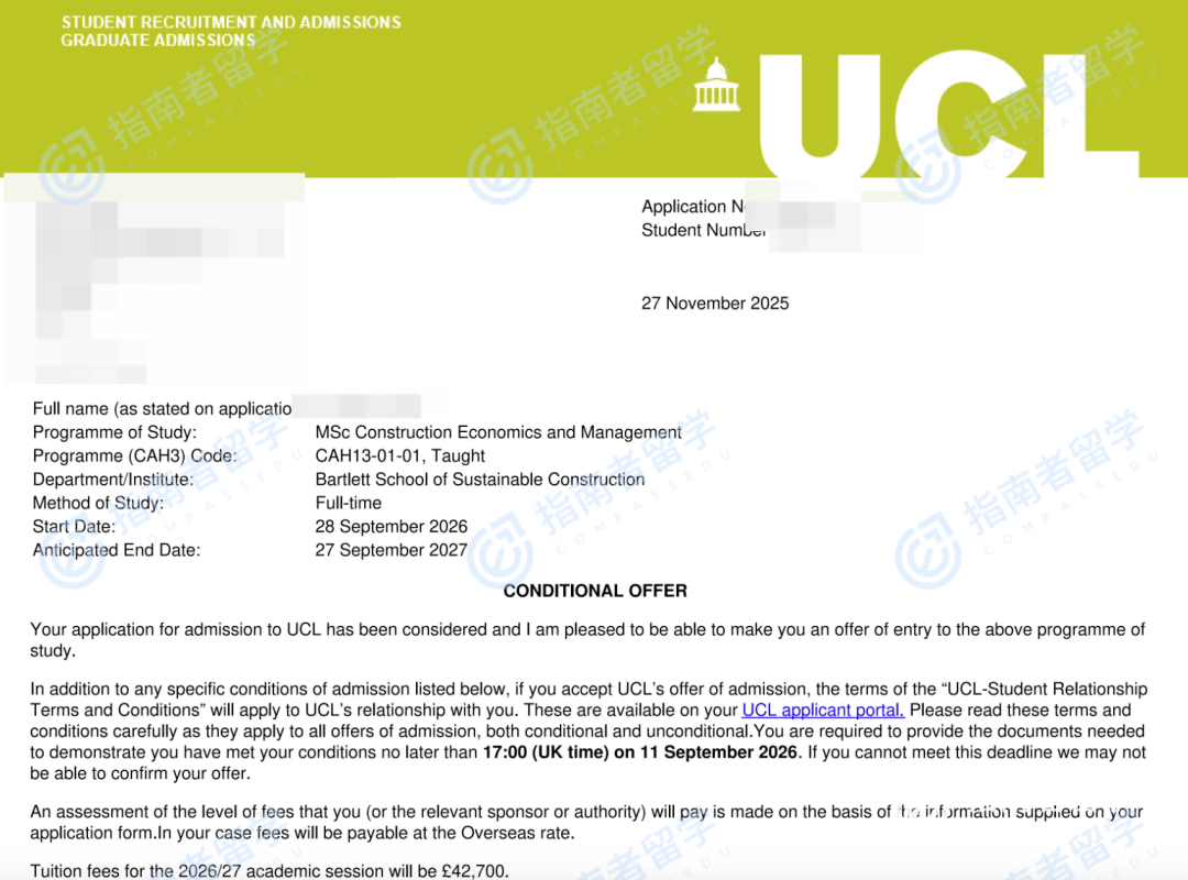 我录取的专业是建筑经济与管理(Construction Economics and Management)。那一刻,从“数学学渣”到“准UCLer”的身份转换,让我有一种强烈的不真实感。