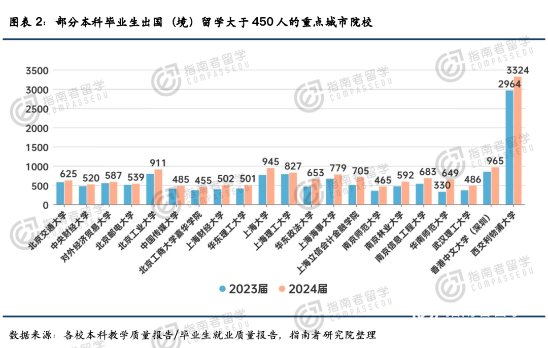 像清华大学、上海交通大学、南开大学这些顶尖大学,2024届出国的人数比上一年都多了150人以上,回升的势头很明显。
