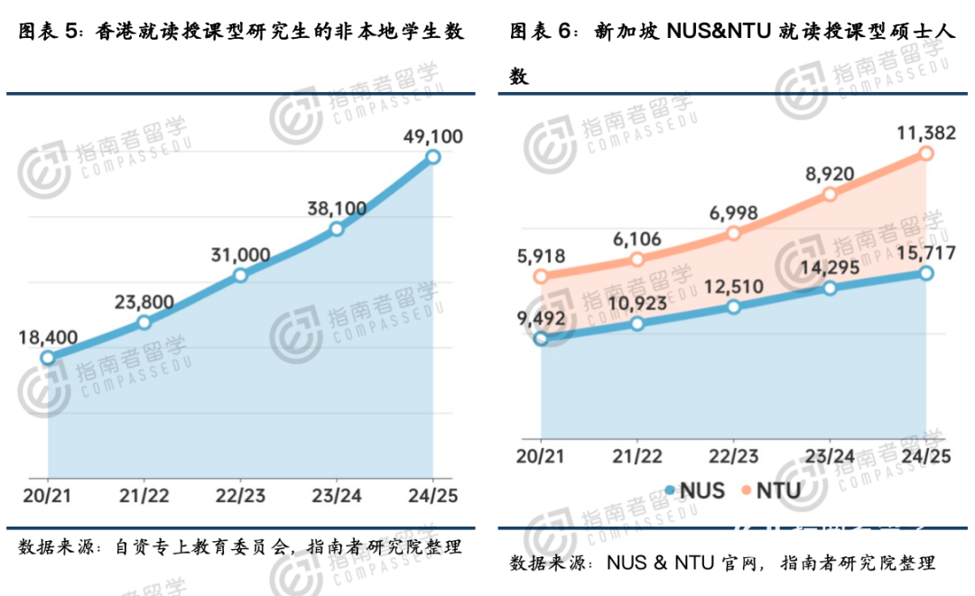 尤其是香港的授课型研究生,简直火得不行!2020/21学年,香港的授课型研究生里,非本地学生才1.84万人,到了2024/25学年,直接涨到了4.91万人,其中内地学生占了87.7%,几乎都是咱们内地过去的。