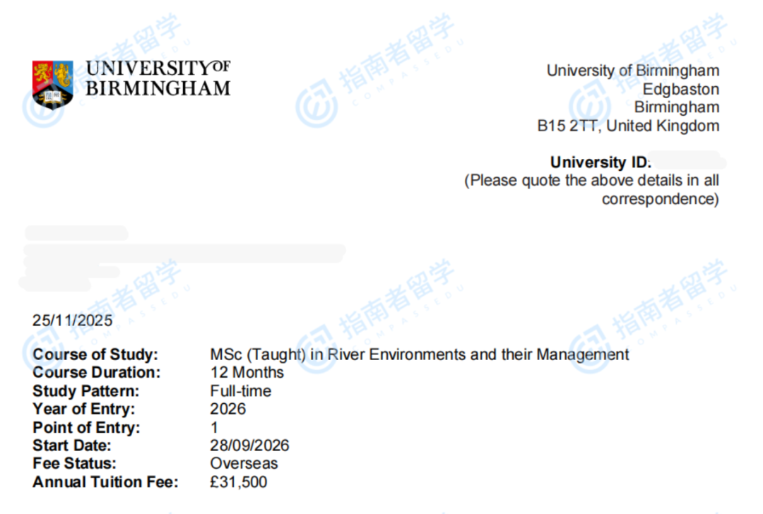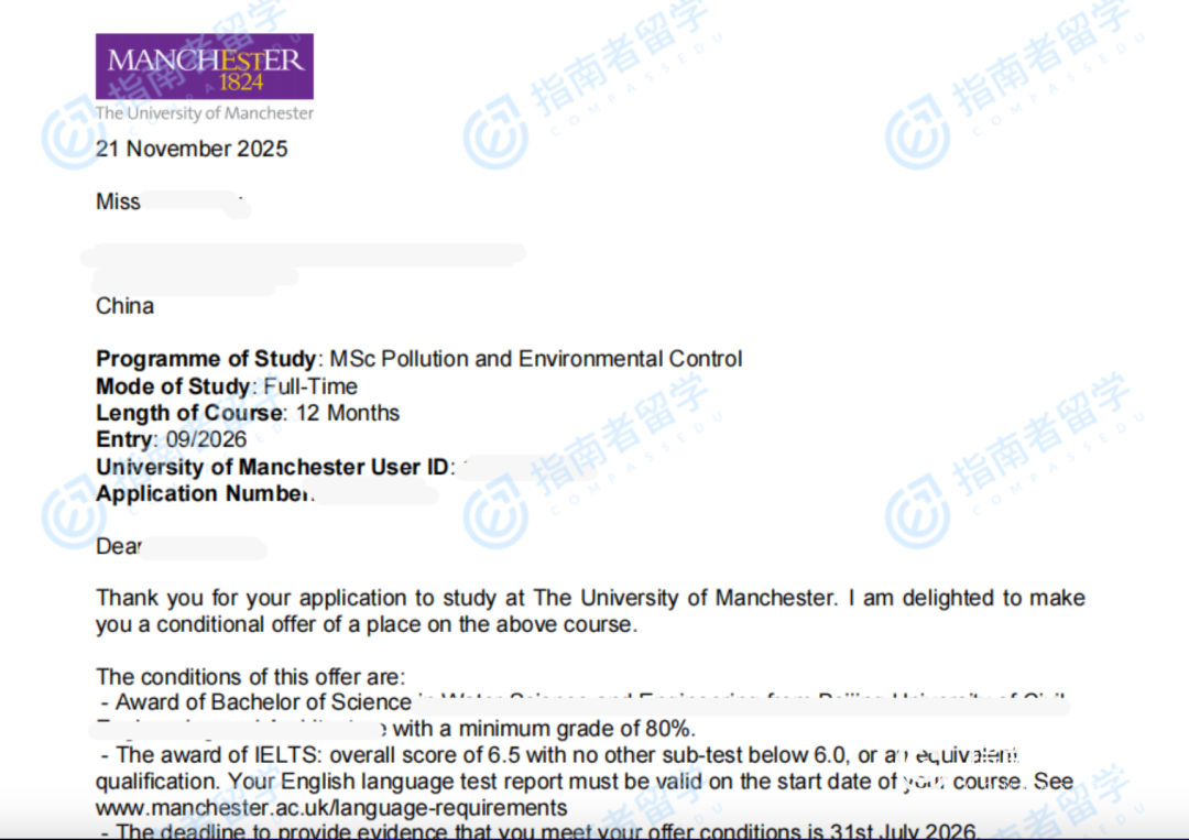 半个月后,伯明翰大学的Offer也到了。四所名校,横扫英伦。我最终决定入读曼彻斯特大学读污染控制专业。
