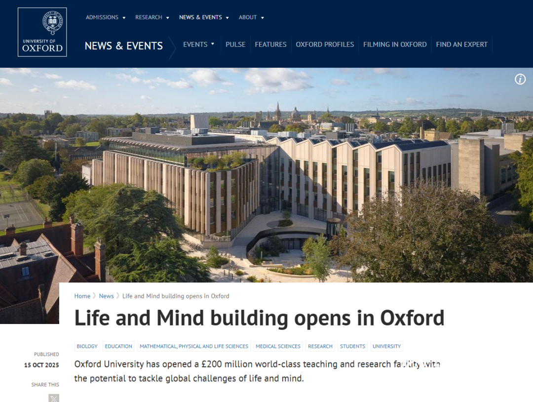 去年牛津校史上规模最大的建筑项目之一,耗资2亿英镑打造的生命与思维大楼官宣开放!