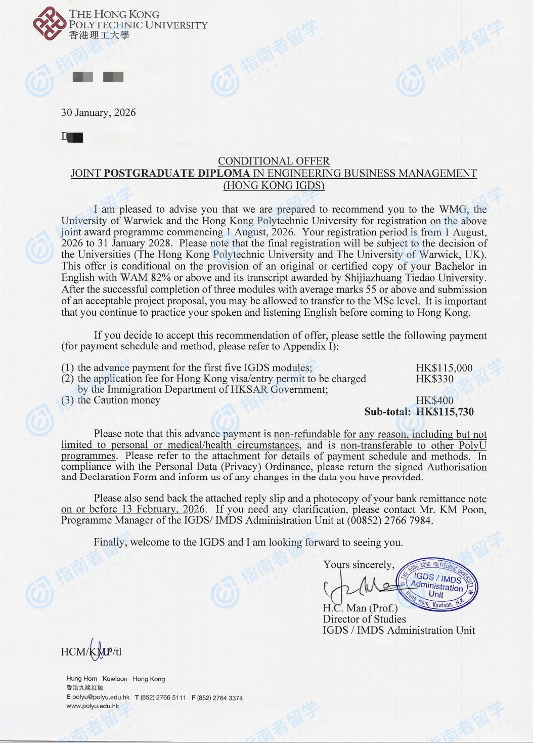 香港理工大学工程商业管理理学硕士研究生offer一枚