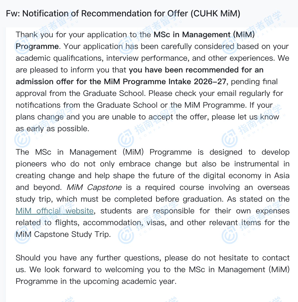 <p>香港中文大学管理学硕士学位课程旨在培养那些不仅接受变化,而且在创造变化中起作用的先驱者,并帮助塑造亚洲和其他地区数字经济的未来。学生将接受广泛的商业基础培训,包括金融、管理沟通、全球供应链管理和战略。香港中文大学管理学硕士学位课程还提供广泛的数字经济和创新管理选修课程,包括金融技术、大数据、创业精神、数字营销等。</p>